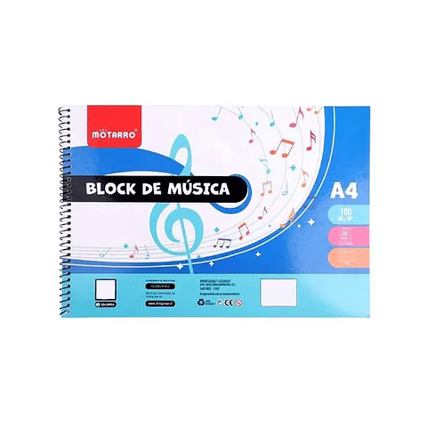 Cuaderno Musica Pauta Entera 20 hjs A4 Motarro